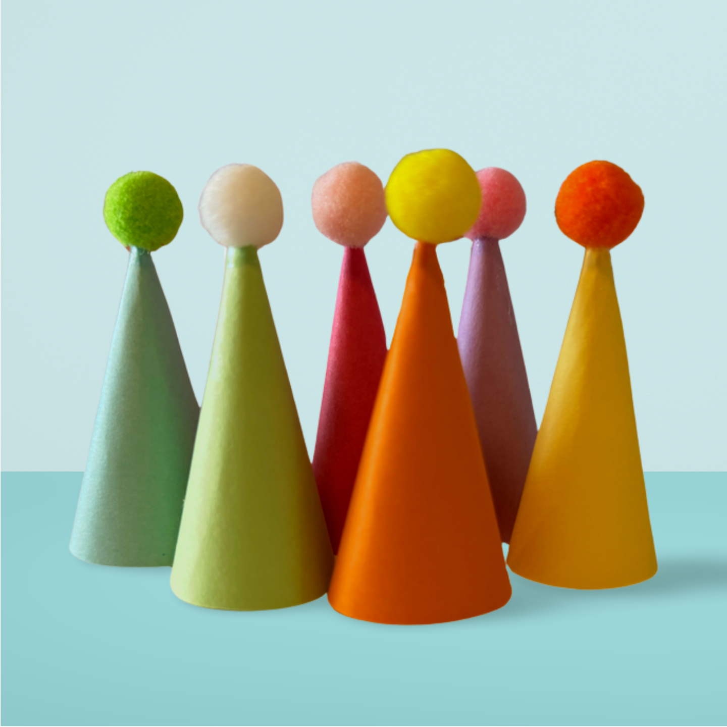 Mini chapéu para docinhos, cada um com 4 à 5cm de diâmetro. Selecionar até 3 cores diferentes.